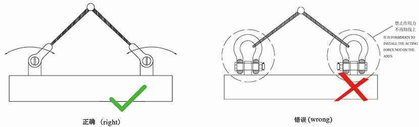 5.卸扣本体不得承受横向弯矩作用即承载力应在本体平面内。